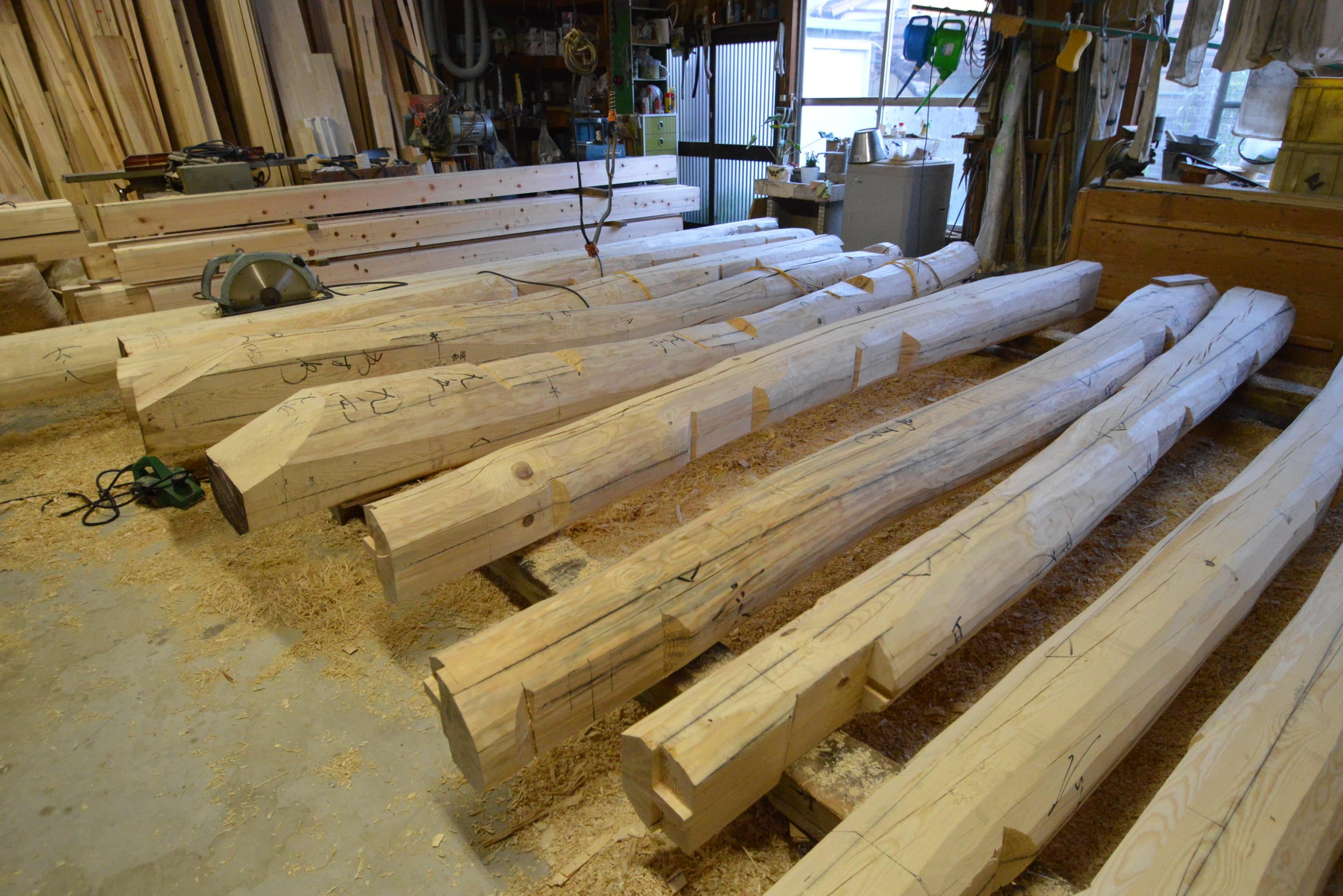 これらの材料は現在主流のプレカット(工場加工)には適さない材料のため高級なひのき材とはいえお求めやすい値段でのご提供となっております。