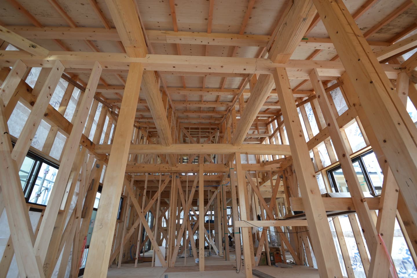 耐力壁には経年劣化が心配される合板やパネルは使用せず無垢木材のみでの耐震仕様をご提供しています。